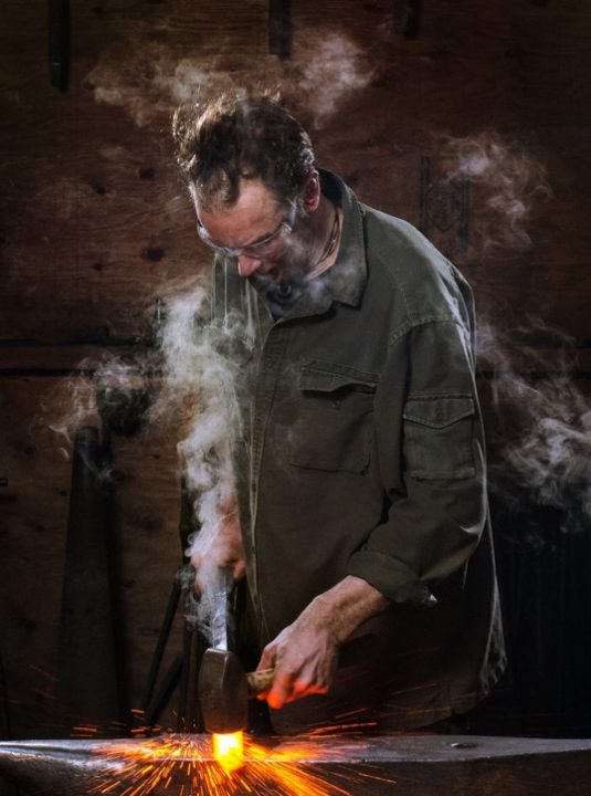 Jake James is an award-winning British born and educated metal artist. He has a quarter century of success creating sculptural and functional work in forged metals.